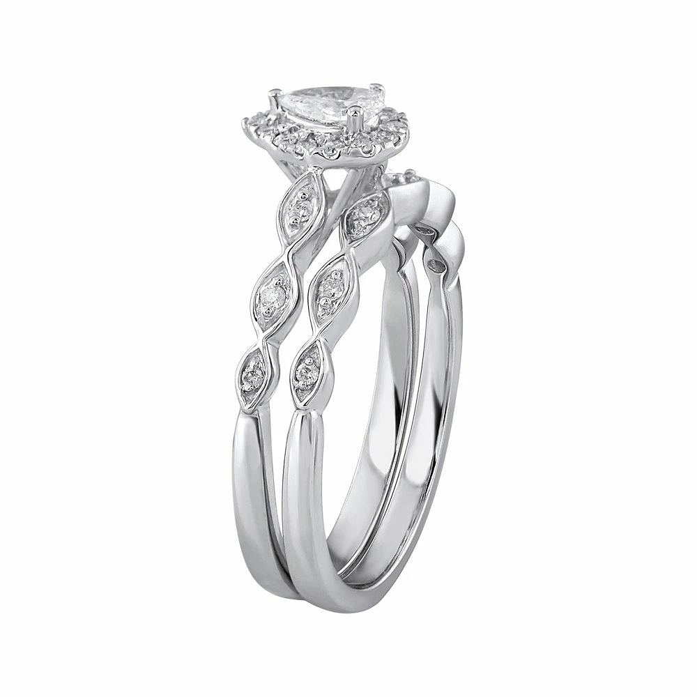 Decorated with dazzling diamonds, this 14k white gold engagement ring set makes a breathtaking symbol of your love and commitment.