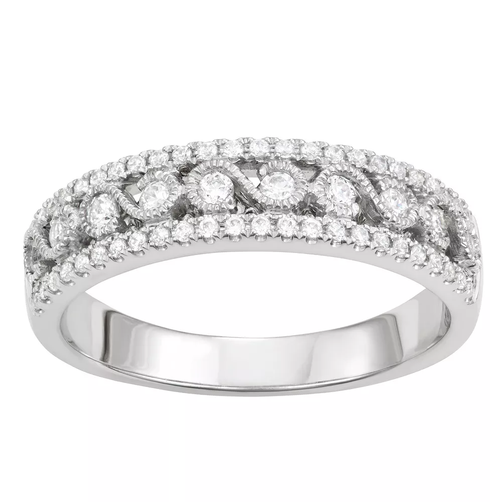 Adorned with shimmering diamonds, this Simply Vera Vera Wang 14k white gold ring exudes elegance.