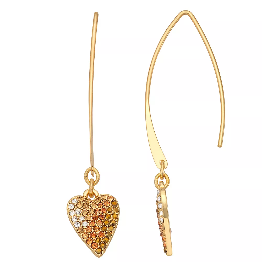 These Simply Vera Vera Wang Gold Tone Pave Heart Threader Earrings are beautifully detailed.