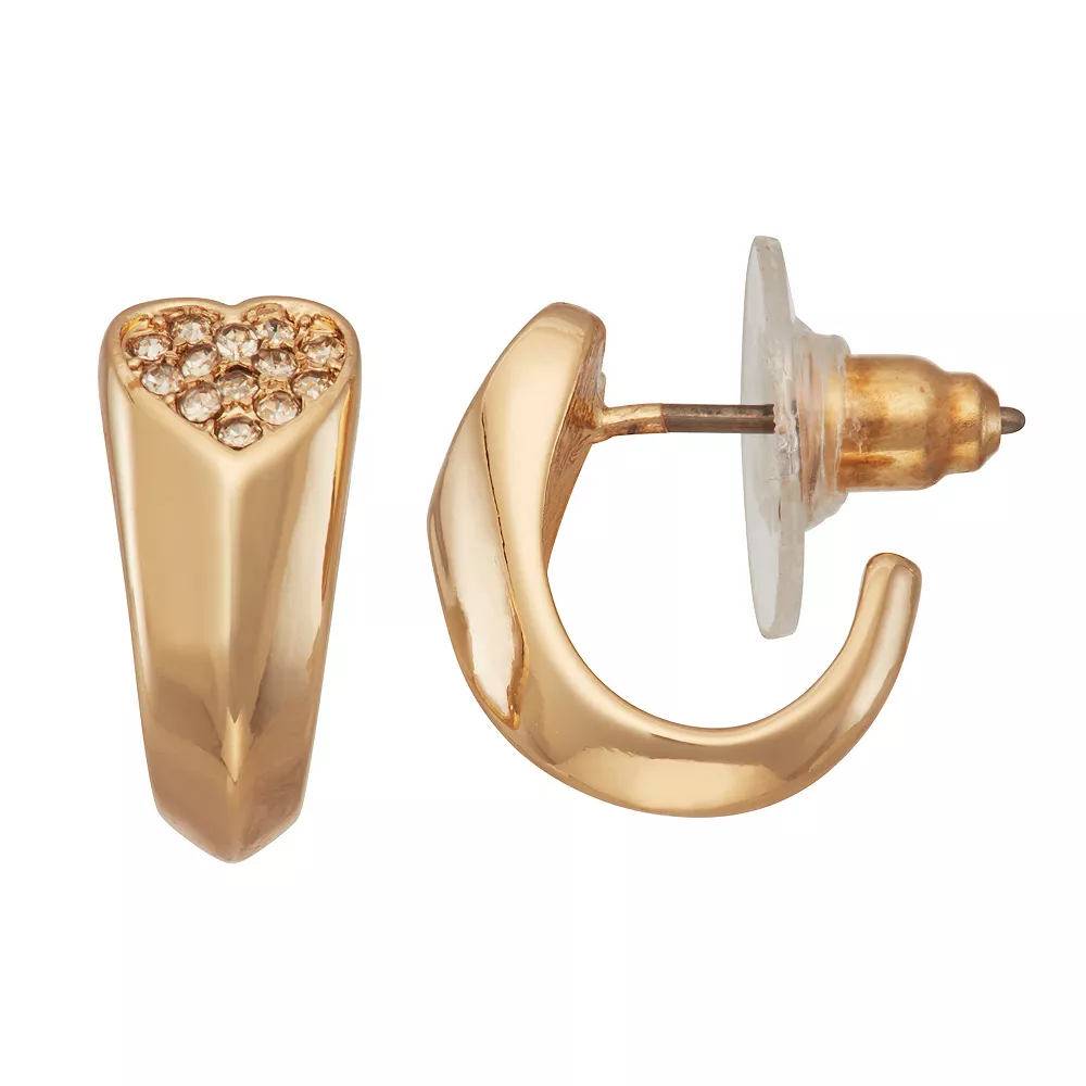 Feel the love with these Simply Vera Vera Wang Silver Tone Pave Heart C Hoop Earrings.