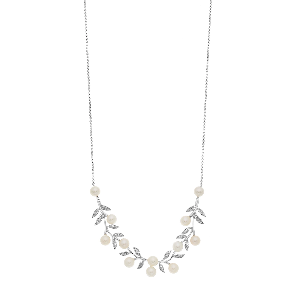 Decorated with freshwater cultured pearls and diamond-accented leaves, this Simply Vera Vera Wang necklace lets you branch out into a new look.