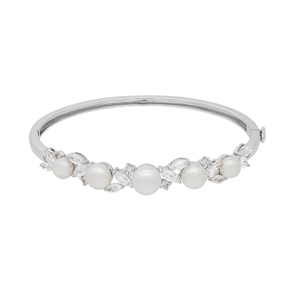 Decorated with freshwater cultured pearls and lab-created white sapphires, this Simply Vera Vera Wang bangle bracelet offers graceful beauty.