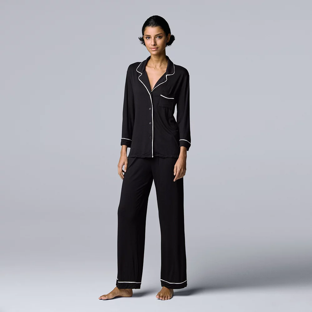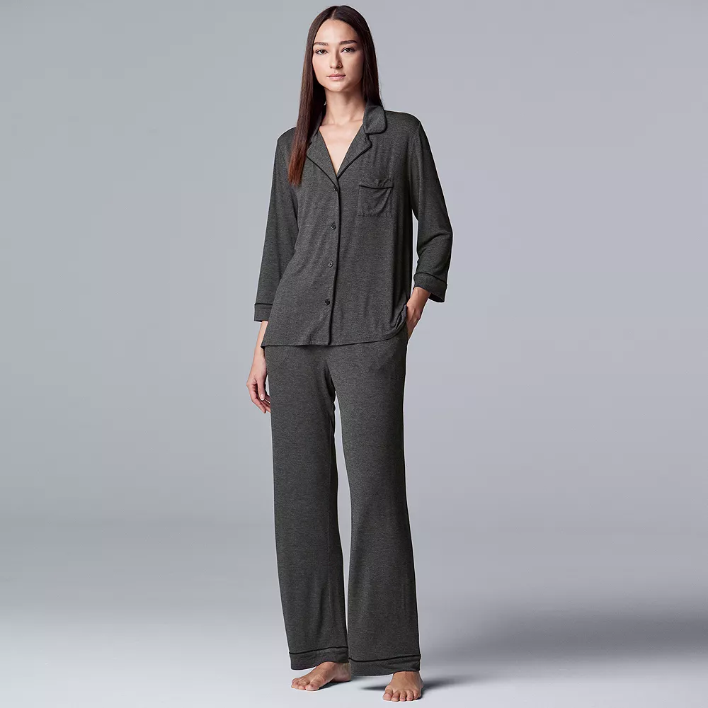 This Simply Vera Vera Wang 3/4 sleeve pajama shirt and pajama pants sleep set will add sophisticated style to your nighttime collection.