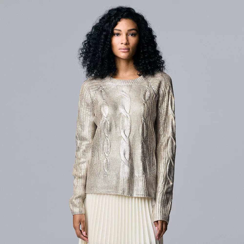 Add a little sparkle to your winter wardrobe with this women’s foiled crewneck sweater from Simply Vera Vera Wang.