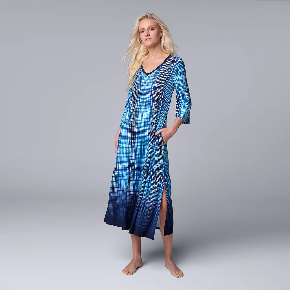 Featuring a soft jersey construction and fun print, this women’s Simply Vera Vera Wang maxi caftan will have you lounging in comfort and style.